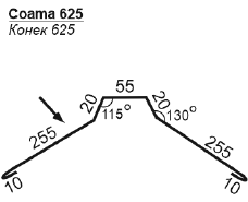Coamă 625 se montează pe muchiile superioare ale acoperișului pentru a preveni pătrunderea umezelii în spațiul de sub învelitoare.