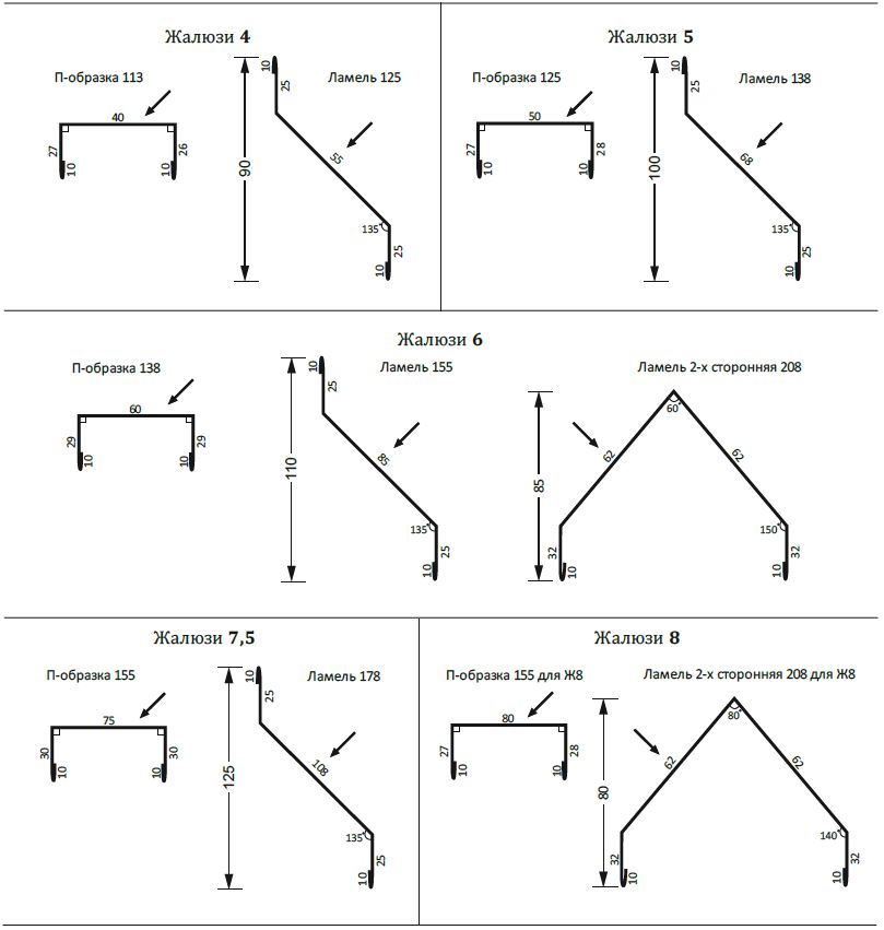 • Ламели для жалюзей 4, 5, 6, 7,5 и 8 - рекомендуется устанавливать с нахлестом минимум 5 мм.