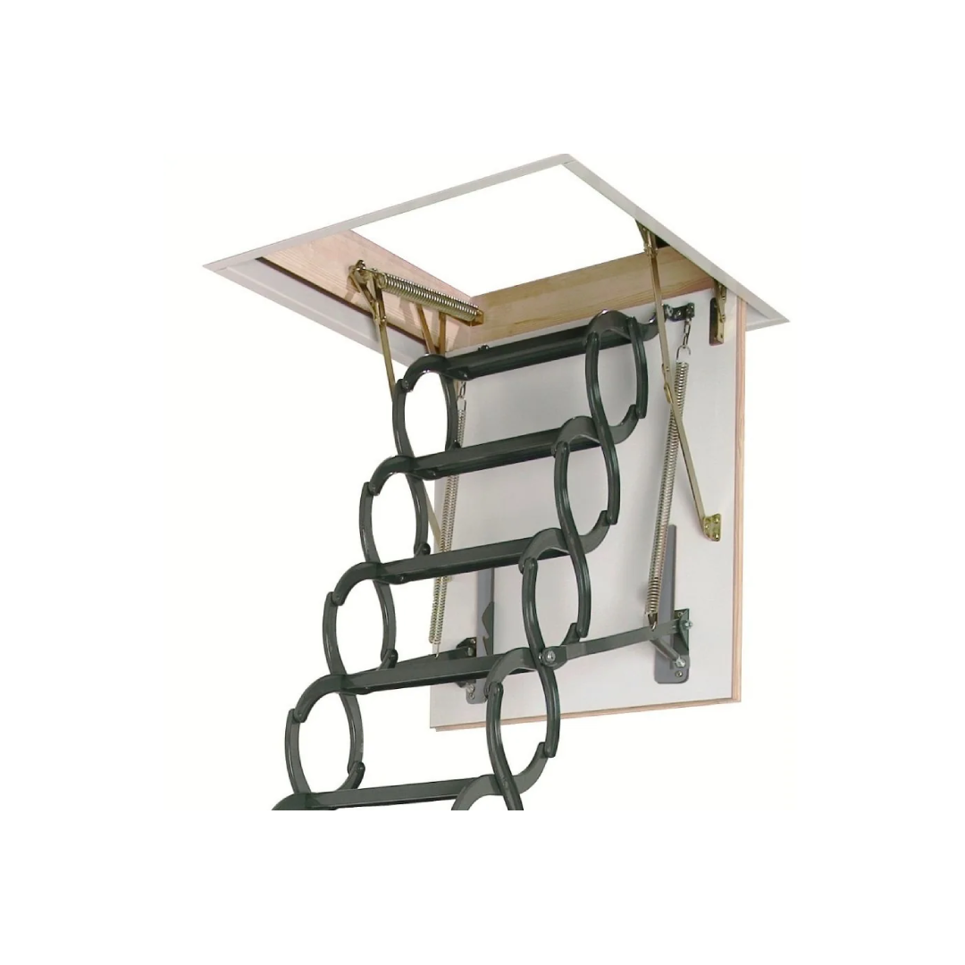 Чердачная металлическая лестница LST имеет "ножничную" систему складывания. Модель выполнена из металла, защищенного от коррозии. Поставляется совместно с потолочным коробом, позволяющим хранить сложенную чердачную лестницу «в потолке».