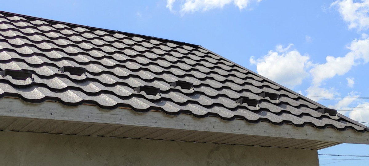 Melano — изысканный профиль металлочерепицы с 3D-резом. Почти незаметные стыки придают крыше цельный и монолитный вид.